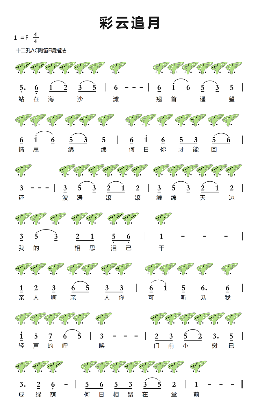 12孔彩云追月, 彩云追月简谱, 彩云追月 陶笛谱